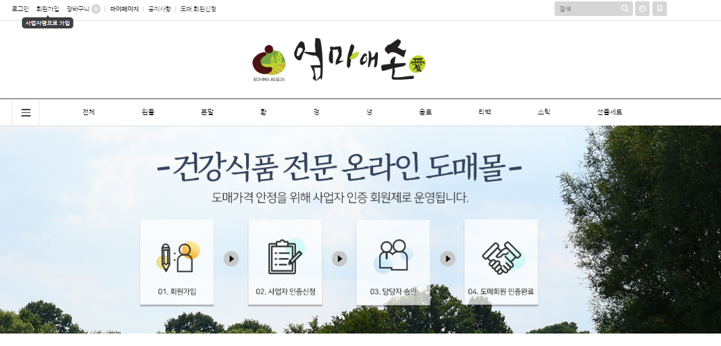 엄마애손은 원물 환정등의 건기식이 중점인 사이트입니다. 대형브랜드의 건기식을 원하시는 분들에게는 맞지 않을 수 있는 사이트이니 참고하시기 바랍니다