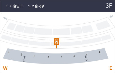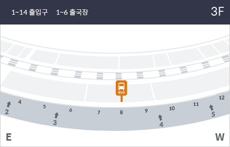 제1여객터미널 3층 3번, 12번 게이트 앞 승차장에서 탑승