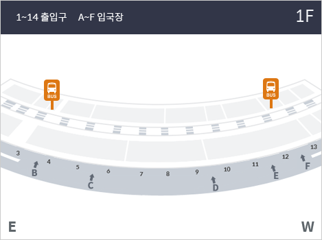 제1여객터미널 1층 3번, 13번(길 건너편)
