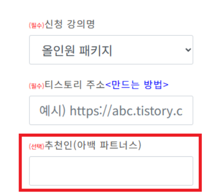 수강료 결제시 아백파트너스 아이디를 입력하시면 5% 할인을 적용받아서 강의를 수강하실수 있습니다.