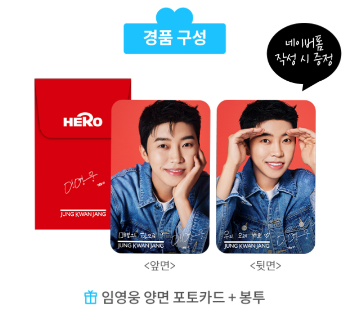정몰에서 매장픽업으로 구매하시면 임영웅 포토카드와 브로마이드 증정