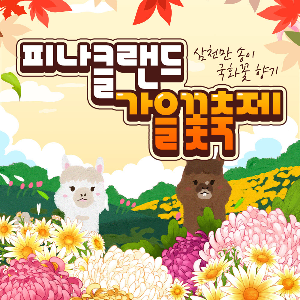 피나클랜드에서 3번째로 선보이는 가을 삼천만송이 국화축제입니다. 30여종의 삼천만송이 국화가 피나클랜드를 가득채우며, 국화터널 ,국화탑,국화코끼리,등 수십가지 국화 조형물전시가있습니다.
